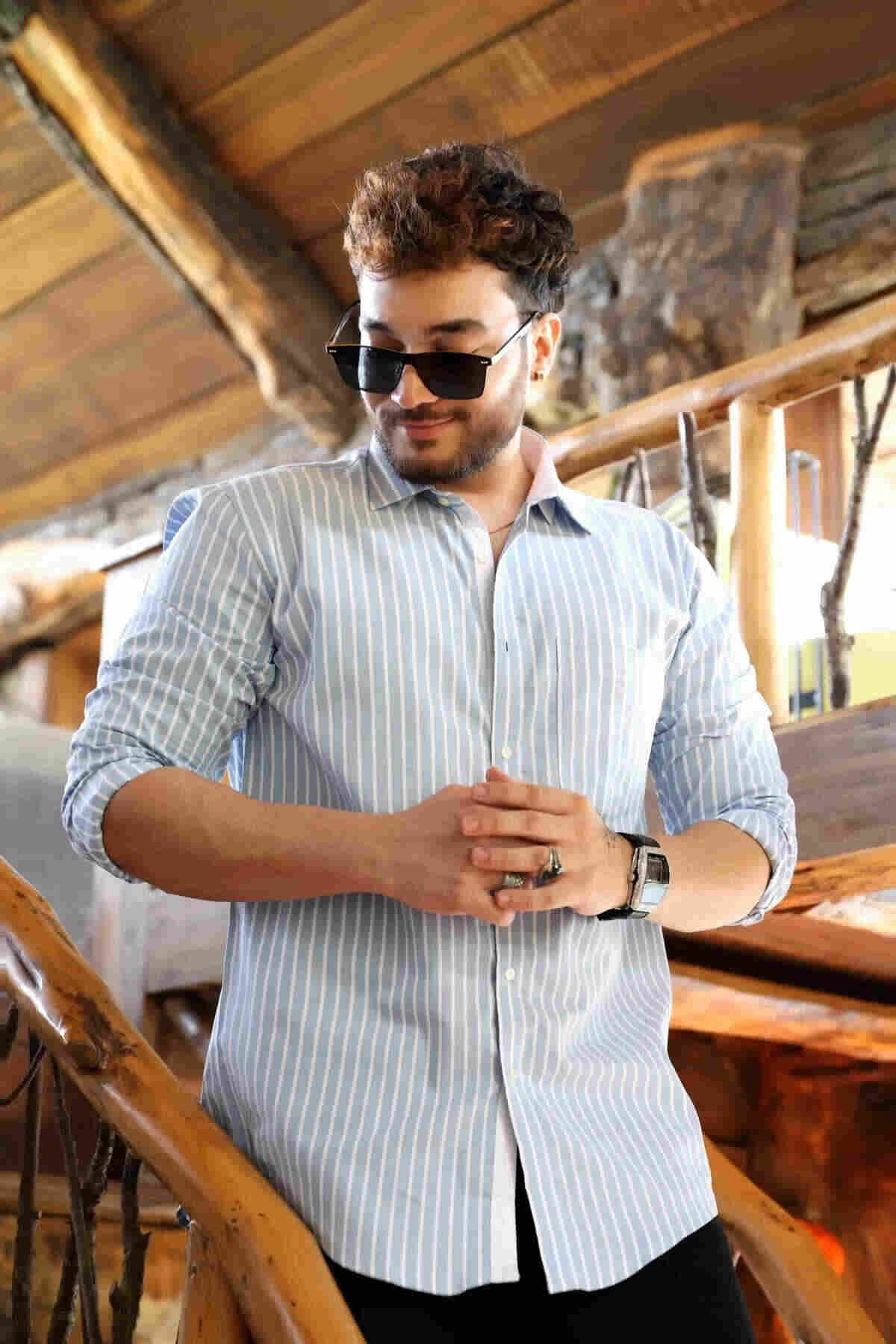 Crisin blue with white stripe cotton shirt