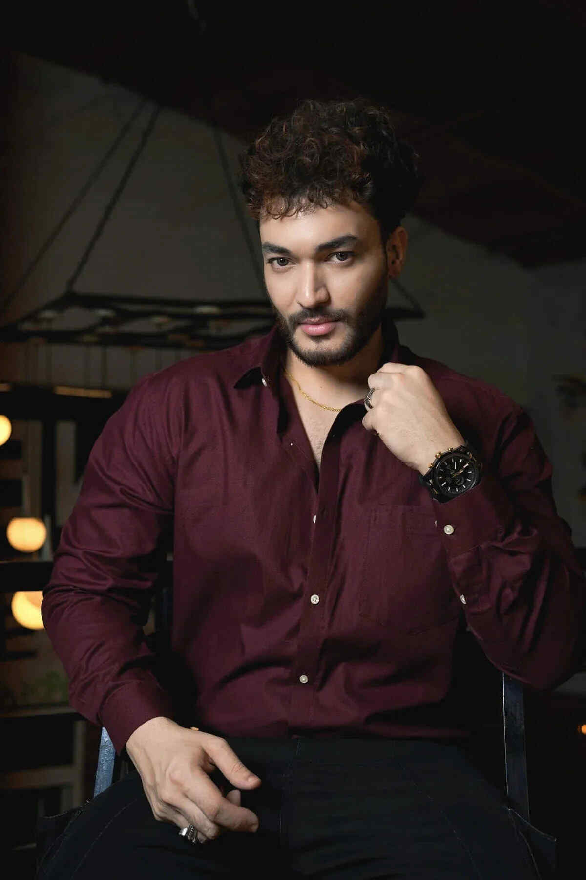 Onyx black with grey checked cotton shirt